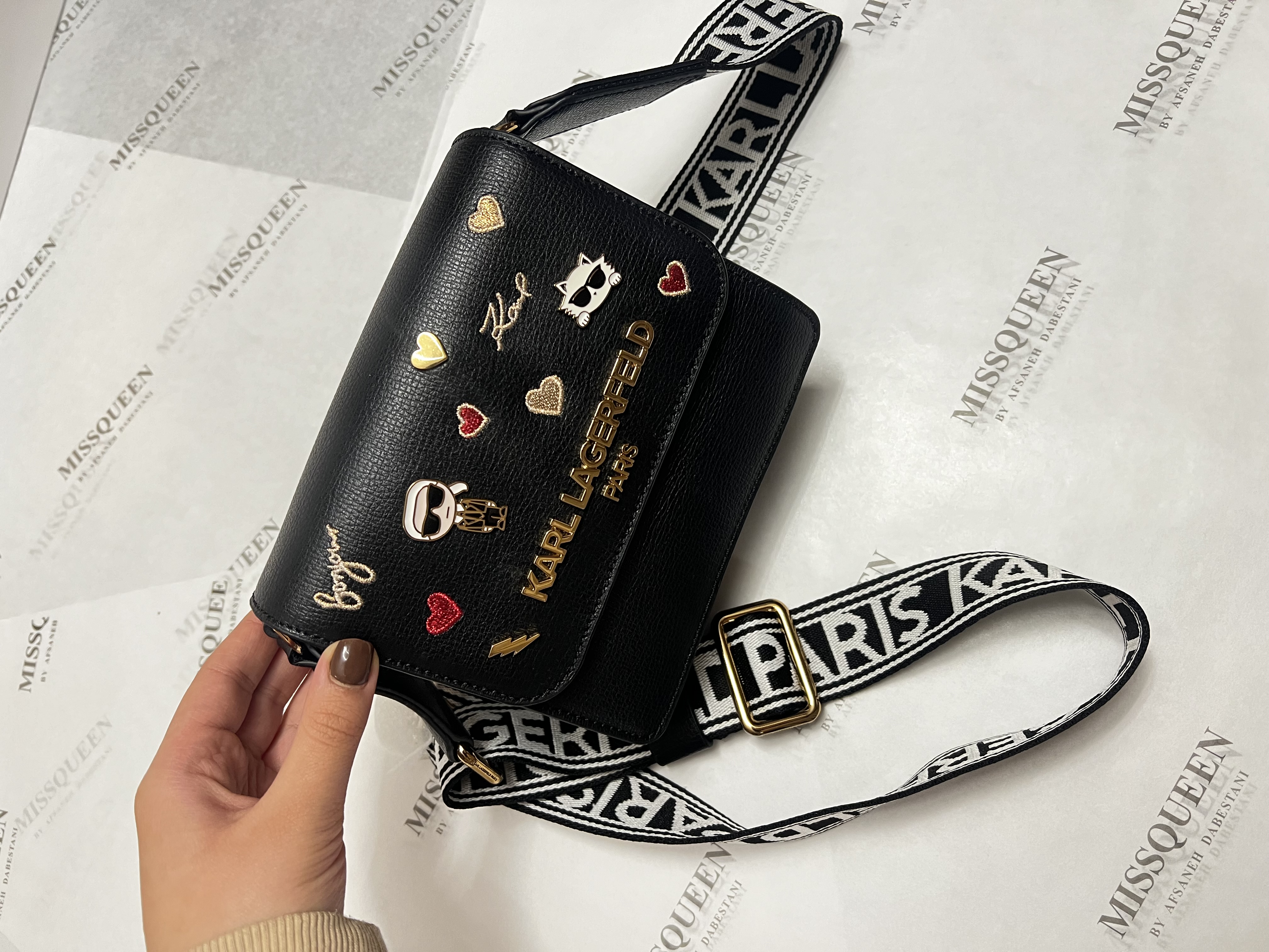 بند بلند قابل تنظیم امکان استفاده به صورت کراسبادی را فراهم کرده و آزادی عمل بیشتری در حرکت به شما میدهد. همچنین طراحی کلاسیک و لوگوی برند Karl Lagerfeld جلوهای لوکس و جذاب به این مدل داده است.