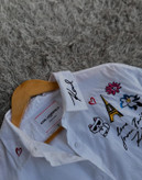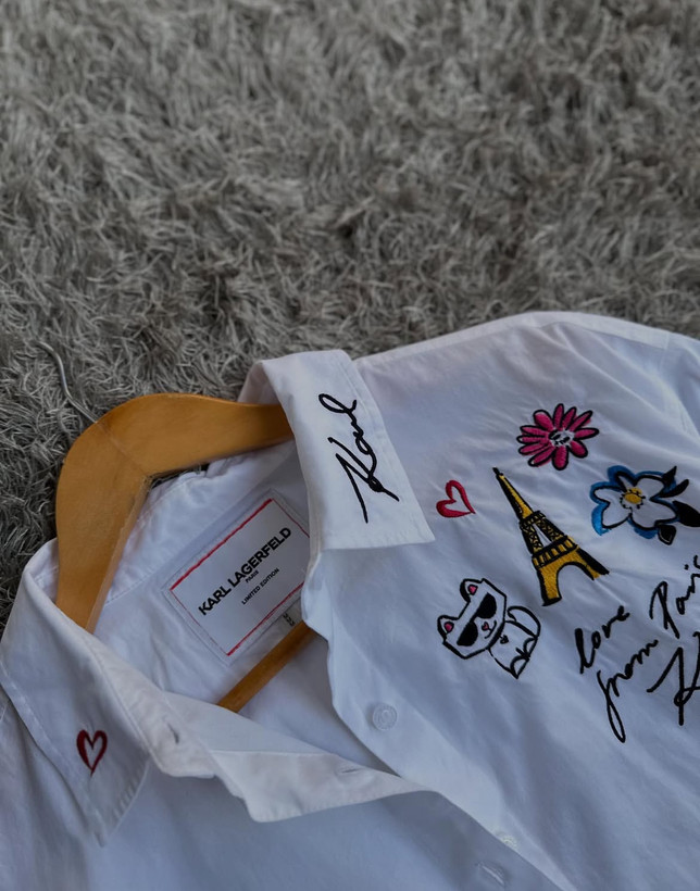 شومیز Oversized Whimsy Button-Up از برند لوکس Karl Lagerfeld یک آیتم خاص و هنری برای استایلهای مدرن و فشن است. این مدل با طراحی اورسایز (Oversized Fit) و گلدوزیهای فانتزی و گرافیکی در قسمتهای مختلف لباس، جلوهای متفاوت و خاص به استایل شما میدهد.