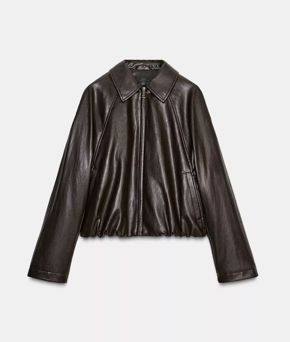 کاپشن Leather Effect Bomber Jacket از برند Zara یکی از آیتمهای ترندی و پرطرفدار در دنیای مد است که با طراحی الهامگرفته از استایلهای کلاسیک بامبر، ظاهری مدرن و جذاب ایجاد میکند. این مدل با ظاهر چرم مصنوعی (Faux Leather)، حس لوکس و استایل خاص را بدون استفاده از چرم طبیعی ارائه میدهد.