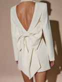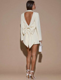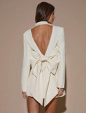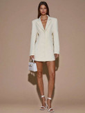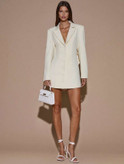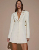آستینهای بلند و برش کتمانند، تعادل زیبایی بین استایل رسمی و سکسی ایجاد کرده و باعث میشود این لباس همزمان هم شیک و هم چشمگیر باشد. فرم کوتاه (Mini) آن نیز استایل را مدرنتر و ترندیتر میکند.