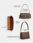 طراحی این کیف بهصورت دوشی (Shoulder Bag) است و دارای بند کوتاه برای قرار گرفتن راحت روی شانه میباشد. همچنین برخی مدلها دارای بند بلند اضافی هستند که امکان استفاده کراسبادی را هم فراهم میکنند.