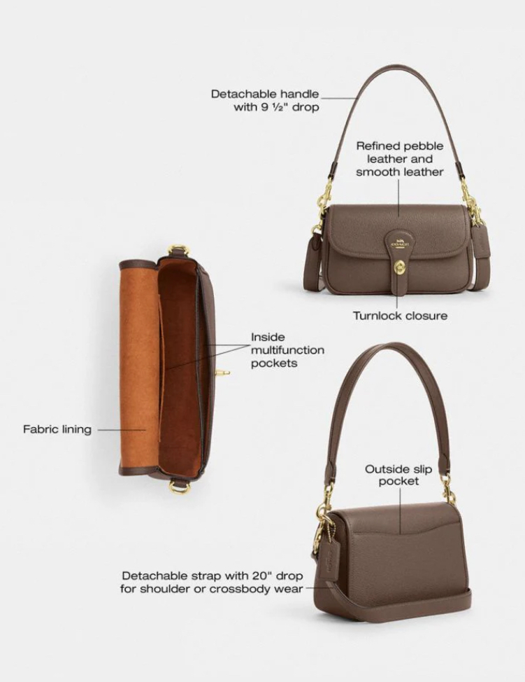 کیف Hadley Shoulder Bag از برند Coach یکی از مدلهای کلاسیک و کاربردی این برند است که با طراحی ساده و مینیمال، برای استفاده روزمره و استایلهای شهری انتخابی عالی محسوب میشود.