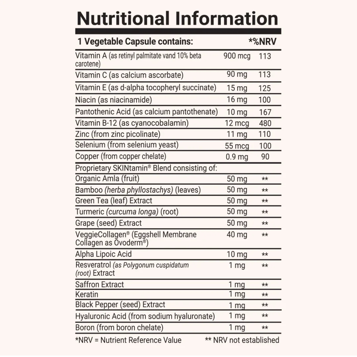 SKINtamin از برند HAIRtamin یک مکمل روزانه ویتامینی برای پوست است که با فرمول تخصصی و ۲۲ ترکیب مفید طراحی شده تا از داخل بدن به سلامت، شفافیت و ساختار پوست کمک کند.