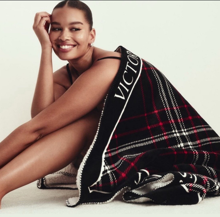 این پتو برای زمانیست که میخواهی در خانه راحت، گرم و آرام بمونی — حتی گوشهنشینی ساده با استایل برند ویکتوریا سکرت ✨