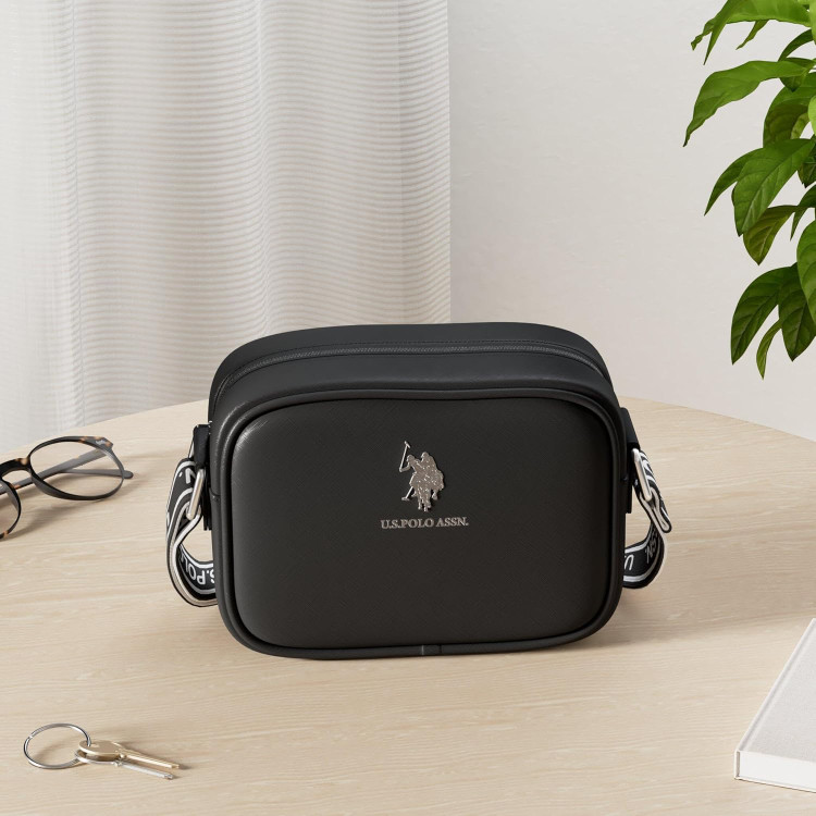 کیف مشکی کراس بادی یواسپولو طراحی ساده و رنگ مشکی کلاسیک، این مدل را به یک انتخاب همیشه ترند و ماندگار تبدیل کرده است. لوگوی برند U.S. POLO ASSN روی کیف جلوهای اصیل و شیک به آن میدهد و نشاندهنده هویت برند معتبر و سبک آمریکایی آن است